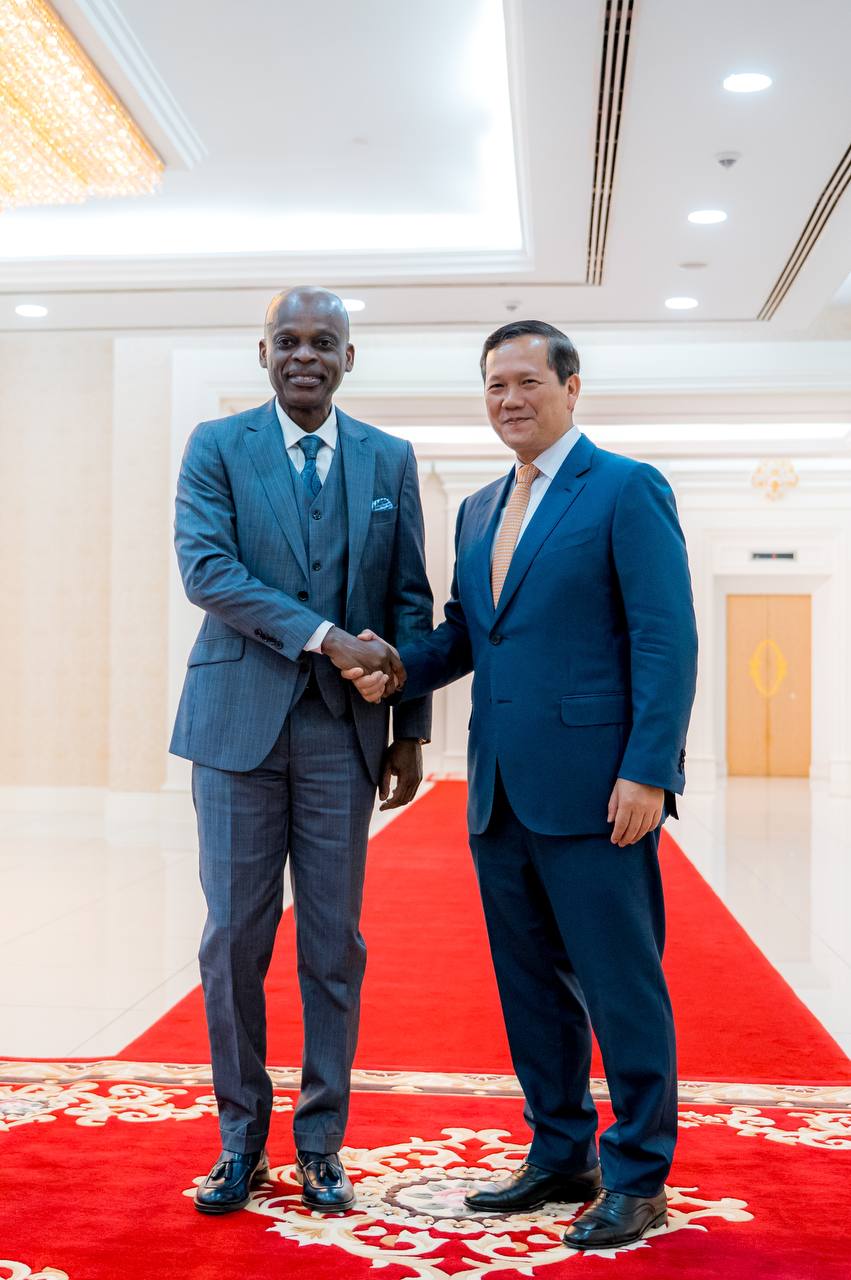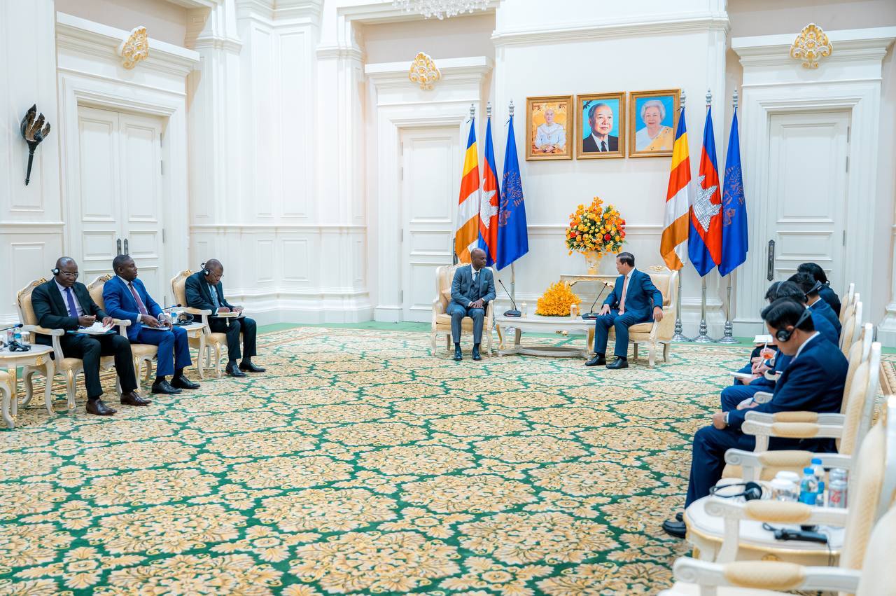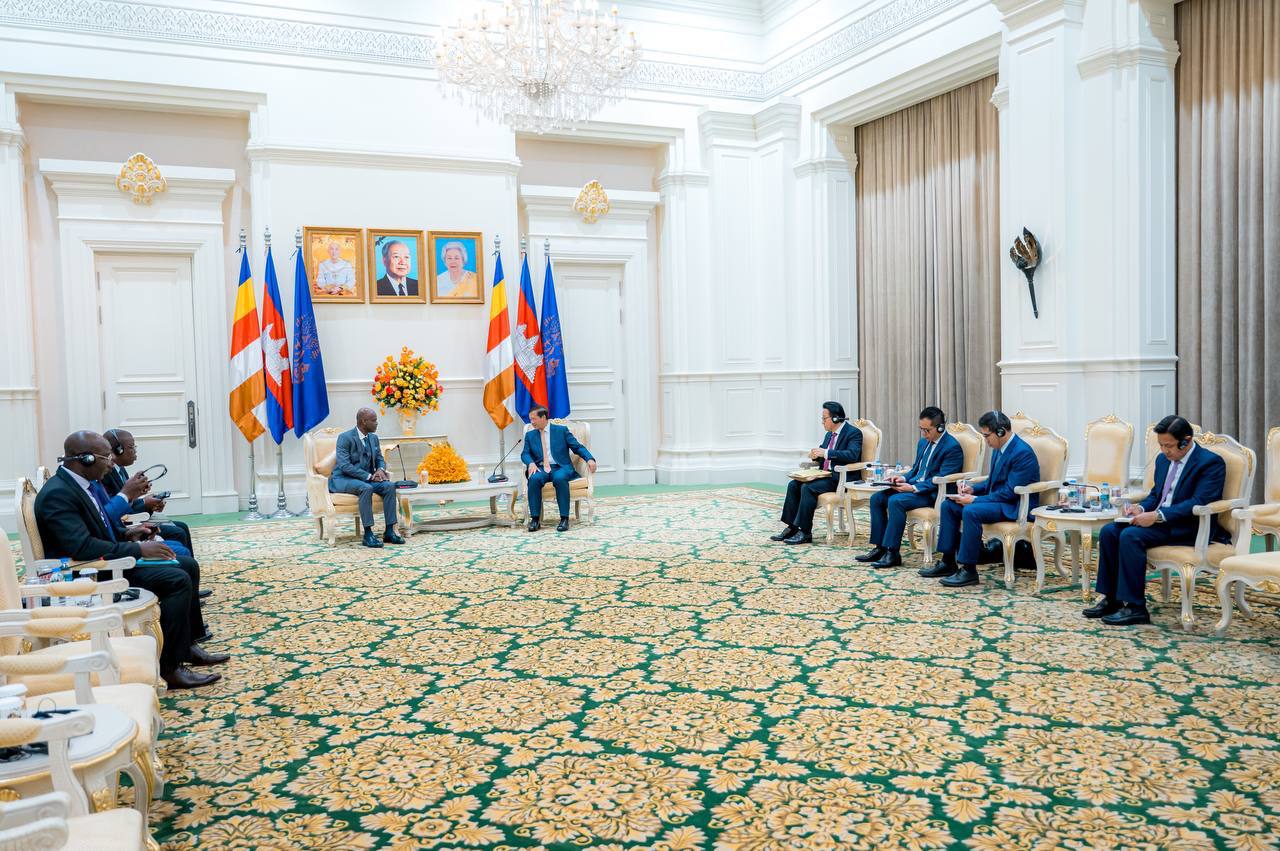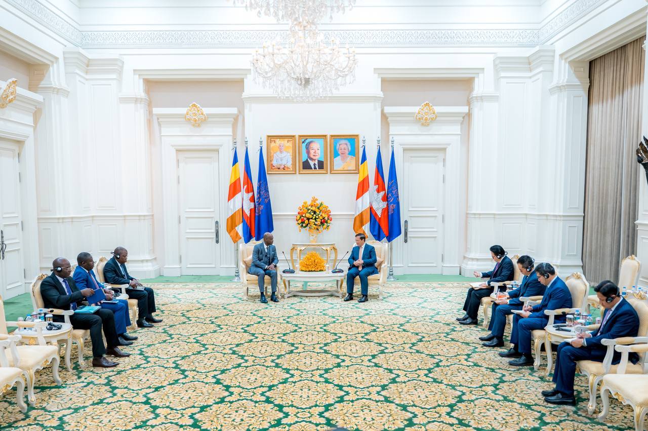 ភ្នំពេញ៖ ថ្ងៃទី២០ ខែមីនា ឆ្នាំ២០២៥ សម្តេចមហាបវរធិបតី ហ៊ុន ម៉ាណែត នាយករដ្ឋមន្ត្រី នៃព្រះរាជាណាចក្រកម្ពុជា អនុញ្ញាតជូនឯកឧត្តមសាស្ត្រាចារ្យ Robert DUSSEY រដ្ឋមន្ត្រីការបរទេស សមារណកម្មតំបន់ និងប្រជាជនតូហ្គោនៅបរទេស នៃសាធារណរដ្ឋតូហ្គោ ចូលជួបសម្តែងការគួរសម និងពិភាក្សាការងារ នៅវិមានសន្តិភាព រាជធានីភ្នំពេញ នារសៀលថ្ងៃទី២០ ខែមីនា ឆ្នាំ២០២៥។