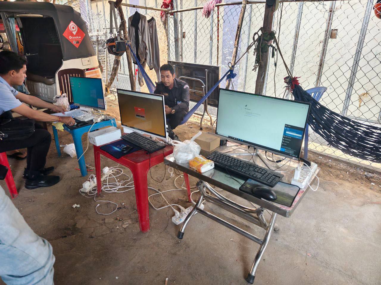 ពេលចុះដល់ទីតាំងខាងលើពុំឃើញមានអ្នកលេង និងអ្នកកាន់កុំព្យូទ័រនោះទេ ដោយធ្វើការដកហូតសម្ភារៈមួយចំនួនដូចខាងក្រោម៖ -កុំព្យូទ័រ ៣គ្រឿងសម្ភារៈពាក់ព័ន្ធ និងល្បែងសុីសងឡូតូ និងមាន់ជល់អនឡាញខាងលើ ត្រូវបានកម្លាំងគណៈបញ្ជាការឯកភាពរដ្ឋបាលខណ្ឌមានជ័យ យកទៅរក្សាទុក នៅសាលាខណ្ឌមានជ័យ