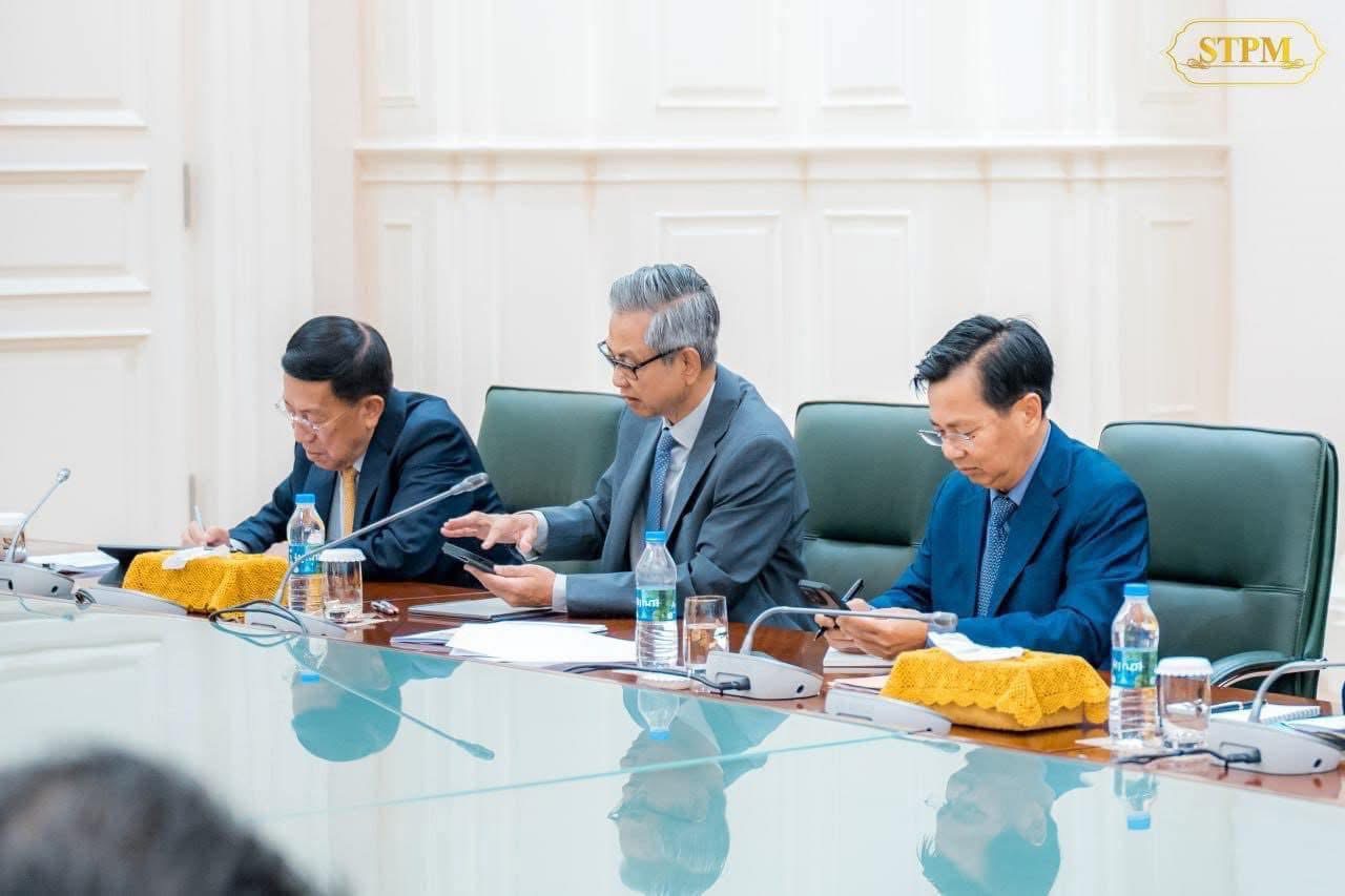 រាជធានីភ្នំពេញ៖ ព្រឹកថ្ងៃអង្គារ ទី២៥ ខែមីនា ឆ្នាំ២០២៥ សម្តេចធិបតី ហ៊ុន ម៉ាណែត នាយករដ្ឋមន្ត្រី នៃព្រះរាជាណាចក្រកម្ពុជា អញ្ជើញដឹកនាំកិច្ចប្រជុំតាមដានវឌ្ឍនភាពនៃការរៀបចំ គន្លងអប់រំនៅកម្ពុជា ដើម្បីតម្រង់ទិសពង្រឹងការអប់រំ និងបណ្តុះបណ្តាលវិជ្ជាជីវ: ក្នុងគោលបំណងកសាងកម្មវិធីអប់រំមួយ ដែលមានច្រកសិក្សាច្រើនជម្រើស ដោយផ្អែកលើសមត្ថភាពសិស្ស និងមានទំនាក់ទំនងច្បាស់លាស់ប្រកបដោយភាពបត់បែន រវាងប្រព័ន្ធអប់រំ និងការអប់រំបណ្តុះបណ្តាលបច្ចេកទេសនិងវិជ្ជាជីវៈ ដើម្បីអភិវឌ្ឍមូលធនមនុស្សប្រកបដោយសមត្ថភាពឆ្លើយតបទៅនឹងតម្រូវការទីផ្សារការងារ និងរចនាសម្ព័ន្ធសេដ្ឋកិច្ច នៅវិមានសន្តិភាព។