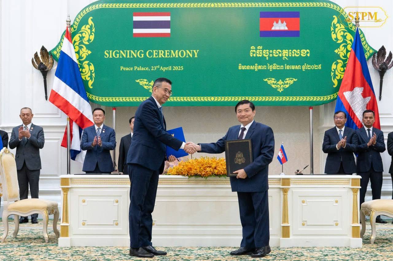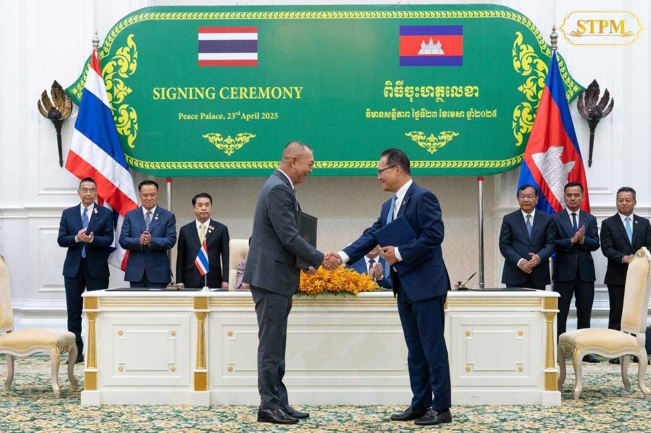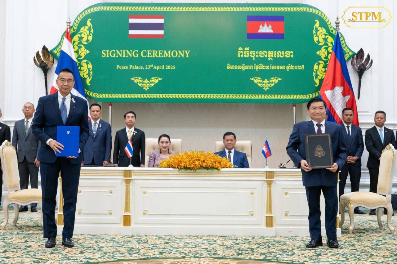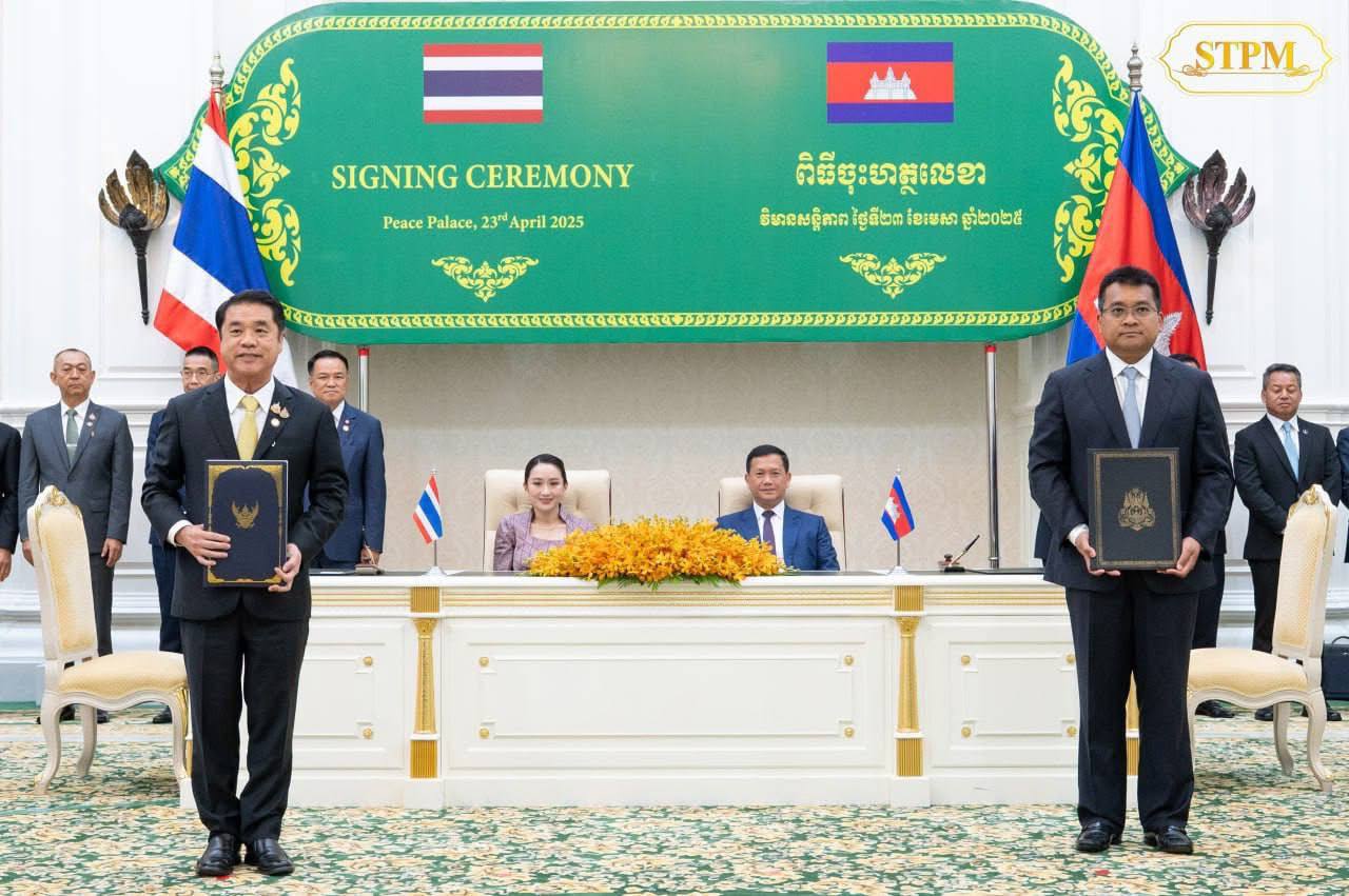 សម្តេចធិបតី ហ៊ុន ម៉ាណែត និង លោកជំទាវ ផែថងថាន ស៊ីណាវ៉ាត់ (Paetongtarn Shinawatra អញ្ជើញចូលរួមជាសហអធិបតីភាព ក្នុងពិធីចុះហត្ថលេខាលើឯកសារចំនួន០៧ និងសម្ពោធនិមិត្តសញ្ញាខួបអនុស្សាវរីយ៍ លើកទី៧៥ នៃការបង្កើតទំនាក់ទំនងការទូតកម្ពុជា-ថៃ