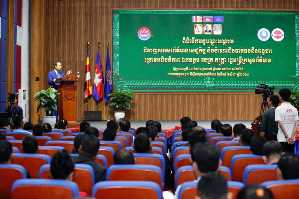នាព្រឹកថ្ងៃទី១៥ ខែសីហា ឆ្នាំ២០២៤ ឯកឧត្តម នេត្រ ភក្ត្រា រដ្ឋមន្រ្តីក្រសួងព័ត៌មាន អញ្ជើញជាអធិបតីបើកវគ្គបណ្តុះបណ្តាល ជំនាញសរសេរព័ត៌មានសេដ្ឋកិច្ច និងចំណេះដឹងពីពន្ធដារ ដែលរៀបចំឡើងដោយសមាគមសហគ្រិនសារព័ត៌មានសេដ្ឋកិច្ចកម្ពុជា (CEMEA) និងសមាគមសហព័ន្ធភ្នាក់ងារសេវាកម្មពន្ធដារកម្ពុជា នៅទីស្តីការក្រសួង រាជធានីភ្នំពេញ។