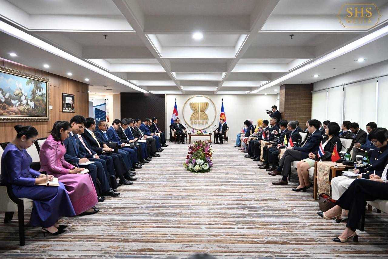 ថ្ងៃទី៥ ខែឧសភា ឆ្នាំ២០២៥ សម្តេចអគ្គមហាសេនាបតីតេជោ ហ៊ុន សែន ប្រធានព្រឹទ្ធសភានៃព្រះរាជាណាចក្រកម្ពុជា អញ្ជើញជួបពិភាក្សាការងារជាមួយ ឯកឧត្តម កៅ គឹមហួន អគ្គលេខាធិការអាស៊ាន តំណាងអចិន្ត្រៃយ៍ប្រទេសសមាជិកអាស៊ានទាំងអស់ ឯកឧត្តម ឯកអគ្គរដ្ឋទូតទីម័រឡេស្តេប្រចាំអាស៊ាននៅលេខាធិការដ្ឋានអាស៊ាន រដ្ឋធានីហ្សាការតា។
