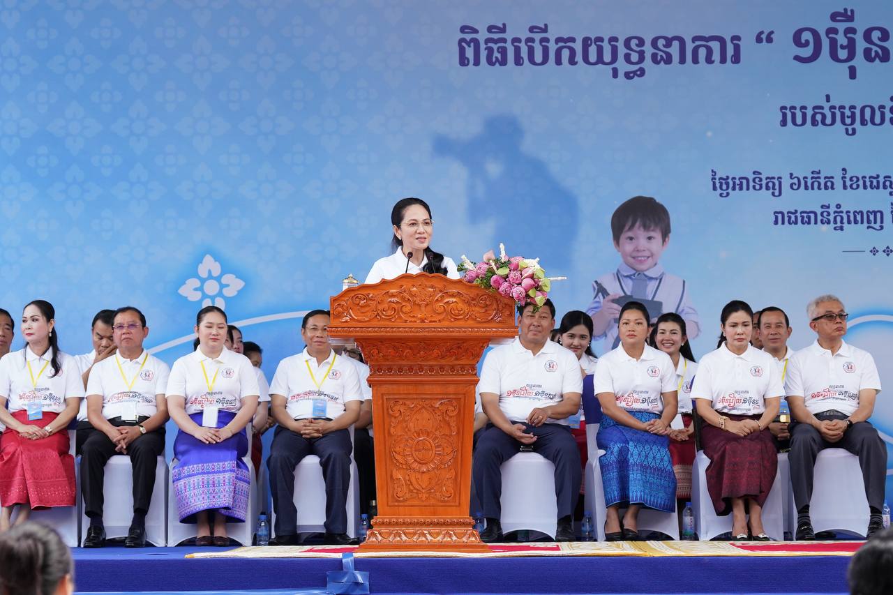 លោកជំទាវបណ្ឌិត ពេជ ចន្ទមុន្នី អញ្ជើញជាអធិបតី ពិធីបើកយុទ្ធនាការ “មួយម៉ឺនរៀល មួយម៉ឺននាក់” របស់មូលនិធិគន្ធបុប្ផាកម្ពុជា