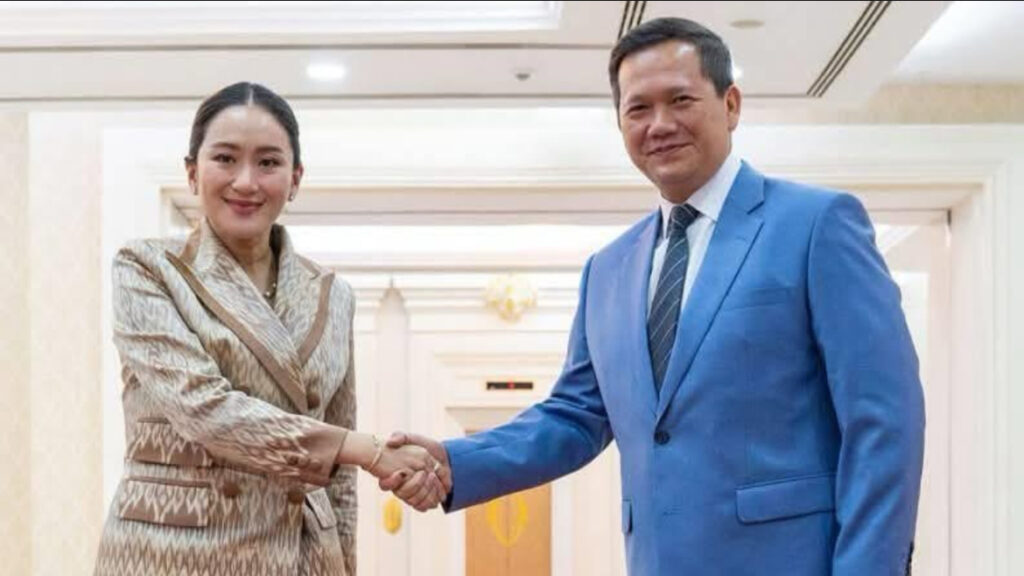 សម្តេចធិបតី ហ៊ុន ម៉ាណែត និង លោកជំទាវ ផែថងថាន ស៊ីណាវ៉ាត់ (Paetongtarn Shinawatra អញ្ជើញចូលរួមជាសហអធិបតីភាព ក្នុងពិធីចុះហត្ថលេខាលើឯកសារចំនួន០៧ និងសម្ពោធនិមិត្តសញ្ញាខួបអនុស្សាវរីយ៍ លើកទី៧៥ នៃការបង្កើតទំនាក់ទំនងការទូតកម្ពុជា-ថៃ