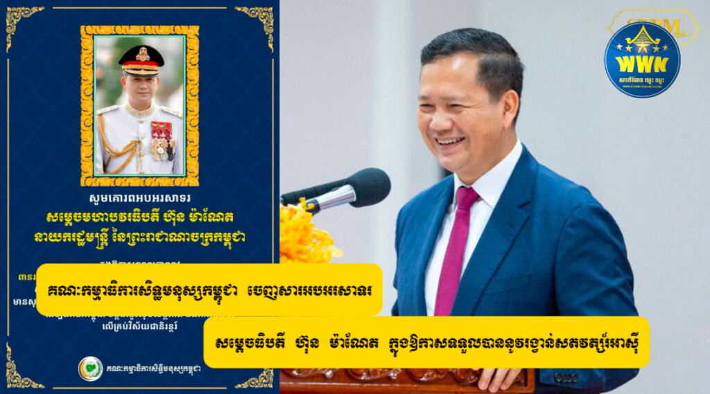 គណៈកម្មាធិការសិទ្ធមនុស្សកម្ពុជា ចេញសារអបអរសាទរ សម្តេចធិបតី ហ៊ុន ម៉ាណែត ក្នុងឱកាសទទួលបាននូវរង្វាន់សតវត្សរ៍អាស៊ី ICAPP