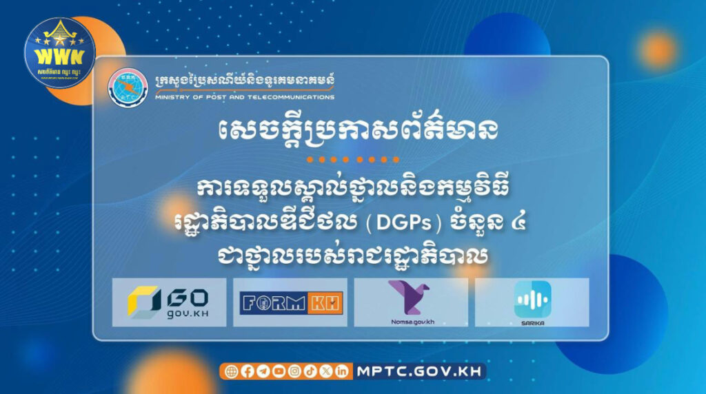 សេចក្តីប្រកាសព័ត៌មាន ស្តីពី ការទទួលស្គាល់ថ្នាលនិងកម្មវិធីរដ្ឋាភិបាលឌីជីថល (DGPs) ចំនួន ៤ ជាថ្នាលរបស់រាជរដ្ឋាភិបាល