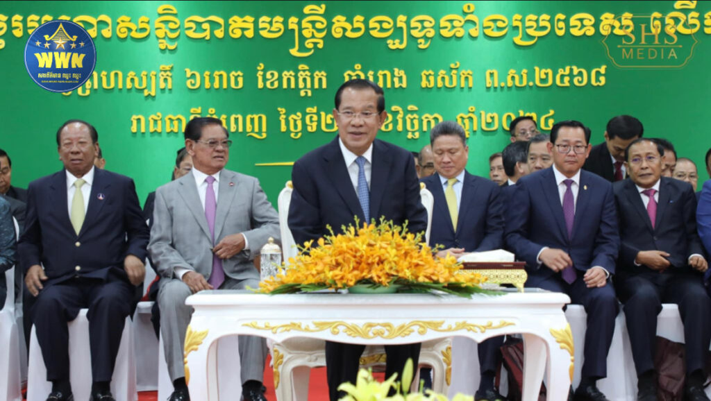 សម្តេចតេជោ ហ៊ុន សែន អញ្ជើញជាព្រះរាជតំណាងដ៏ខ្ពង់ខ្ពស់ព្រះករុណា ព្រះបាទ សម្ដេច ព្រះបរមនាថ នរោត្តម សីហមុនី ព្រះមហាក្សត្រ នៃព្រះរាជាណាចក្រកម្ពុជា ក្នុងពិធីបើកអនុសំវច្ឆរមហាសន្និបាតមន្ត្រីសង្ឃ ទូទាំងប្រទេសលើកទី៣២