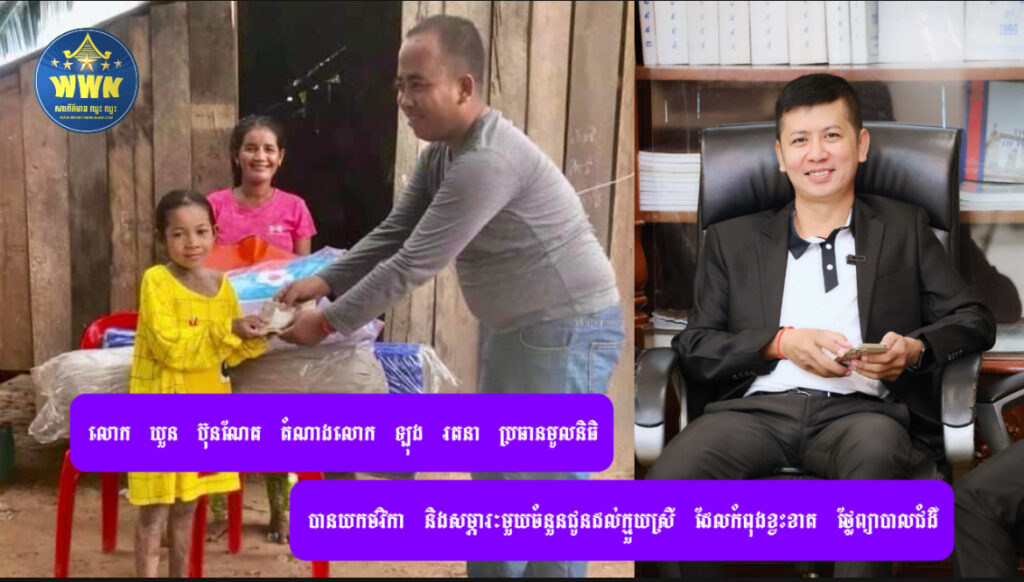 លោក ឃួន ប៊ុនណែត តំណាងលោក ឡុង រតនា ប្រធានមូលនិធិ បានយកថវិកា និងសម្ភារៈមួយចំនួនជូនដល់ក្មួយស្រី ដែលកំពុងខ្វះខាតថ្លែព្យាបាលជំងឺ