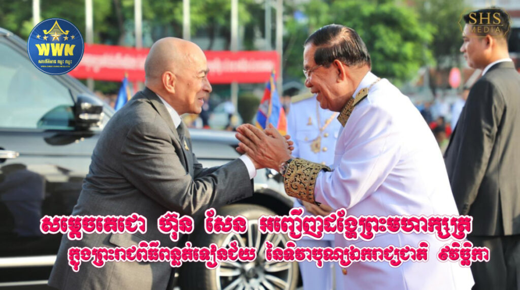 សម្តេចតេជោ ហ៊ុន សែន អញ្ជើញដង្ហែព្រះមហាក្សត្រ ក្នុងព្រះរាជពិធីពន្លត់ទៀនជ័យ នៃទិវាបុណ្យឯករាជ្យជាតិ ៩វិច្ឆិកា