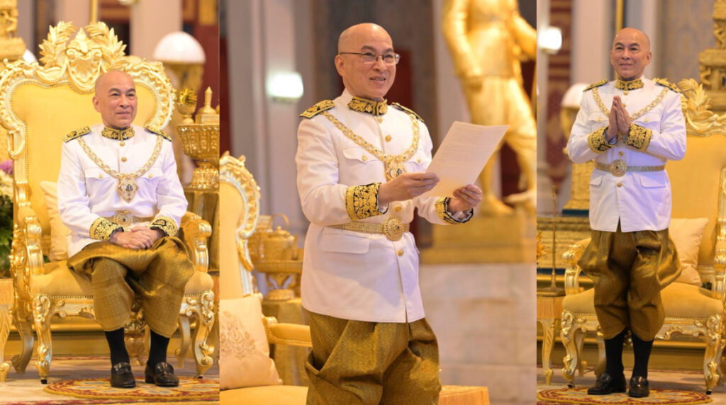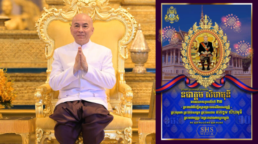 សម្តេចតេជោ ហ៊ុន សែន និង សម្ដេចកិត្តិព្រឹទ្ធបណ្ឌិត អញ្ជើញដង្ហែព្រះករុណាព្រះបាទសម្ដេច ព្រះបរមនាថ នរោត្តម សីហមុនី ព្រះមហាក្សត្រ នៃព្រះរាជាណាចក្រកម្ពុជា ក្នុងព្រះរាជពិធីសាសនាខួបទី២០ នៃការគ្រងព្រះបរមសិរីរាជសម្បត្តិ