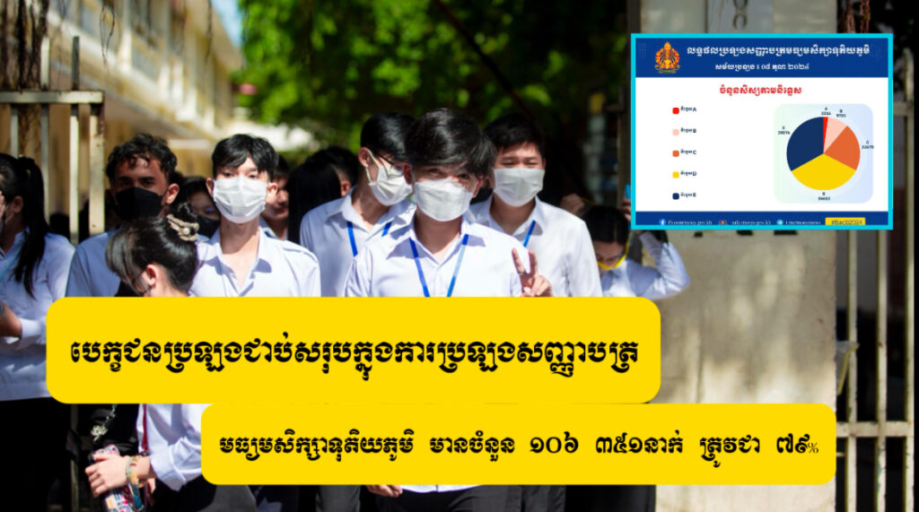 បេក្ខជនប្រឡងជាប់សរុបក្នុងការប្រឡងសញ្ញាបត្រមធ្យមសិក្សាទុតិយភូមិ មានចំនួន ១០៦ ៣៥១នាក់ ត្រូវជា ៧៩%